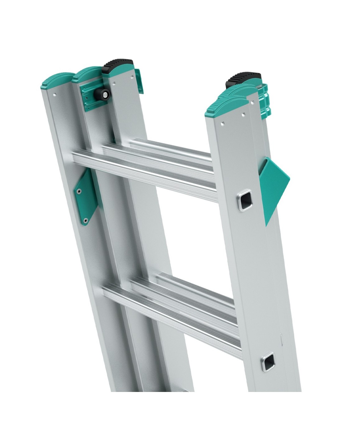 Cette échelle transformable 3 plans peut être placée sur 2 niveaux différents pour être utilisée dans les escaliers. Ses pieds sont renforcés et ses barreaux sont antidérapants. 1 plan peut être séparé des 2 autres du modèle 7 marches au modèle 10 marches.
