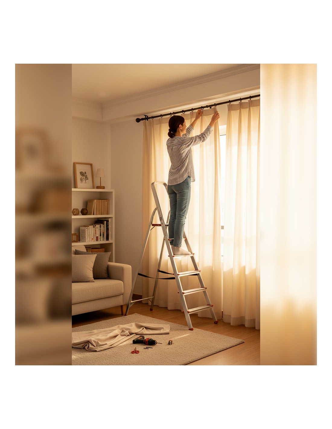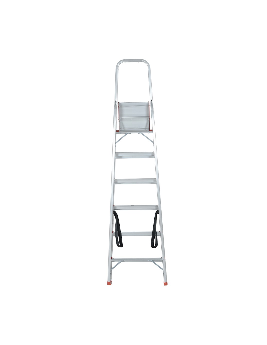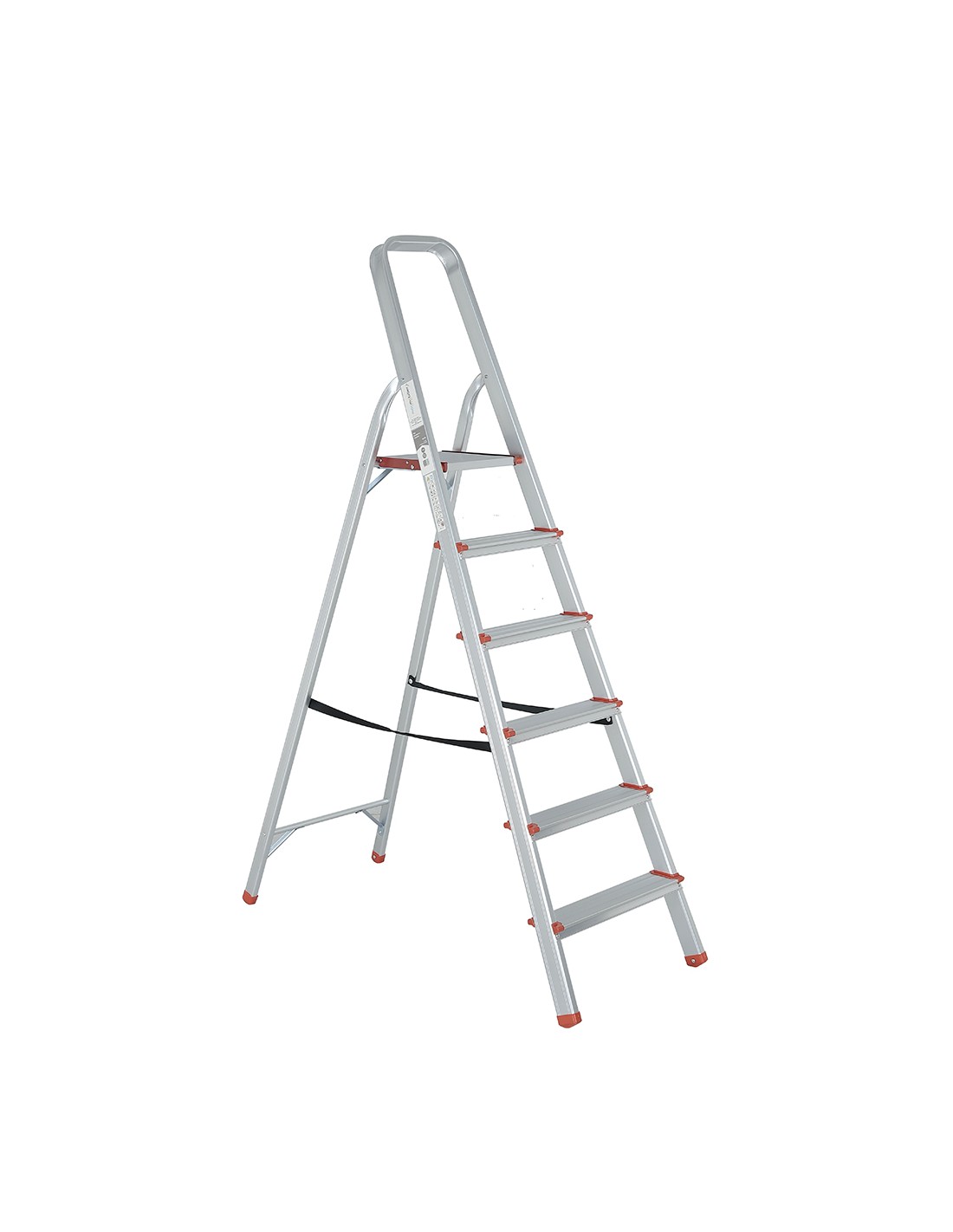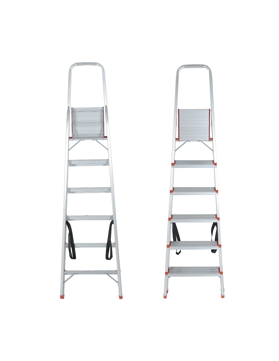 Escabeau pliable en aluminium, à la fois léger, robuste et facile à transporter.
