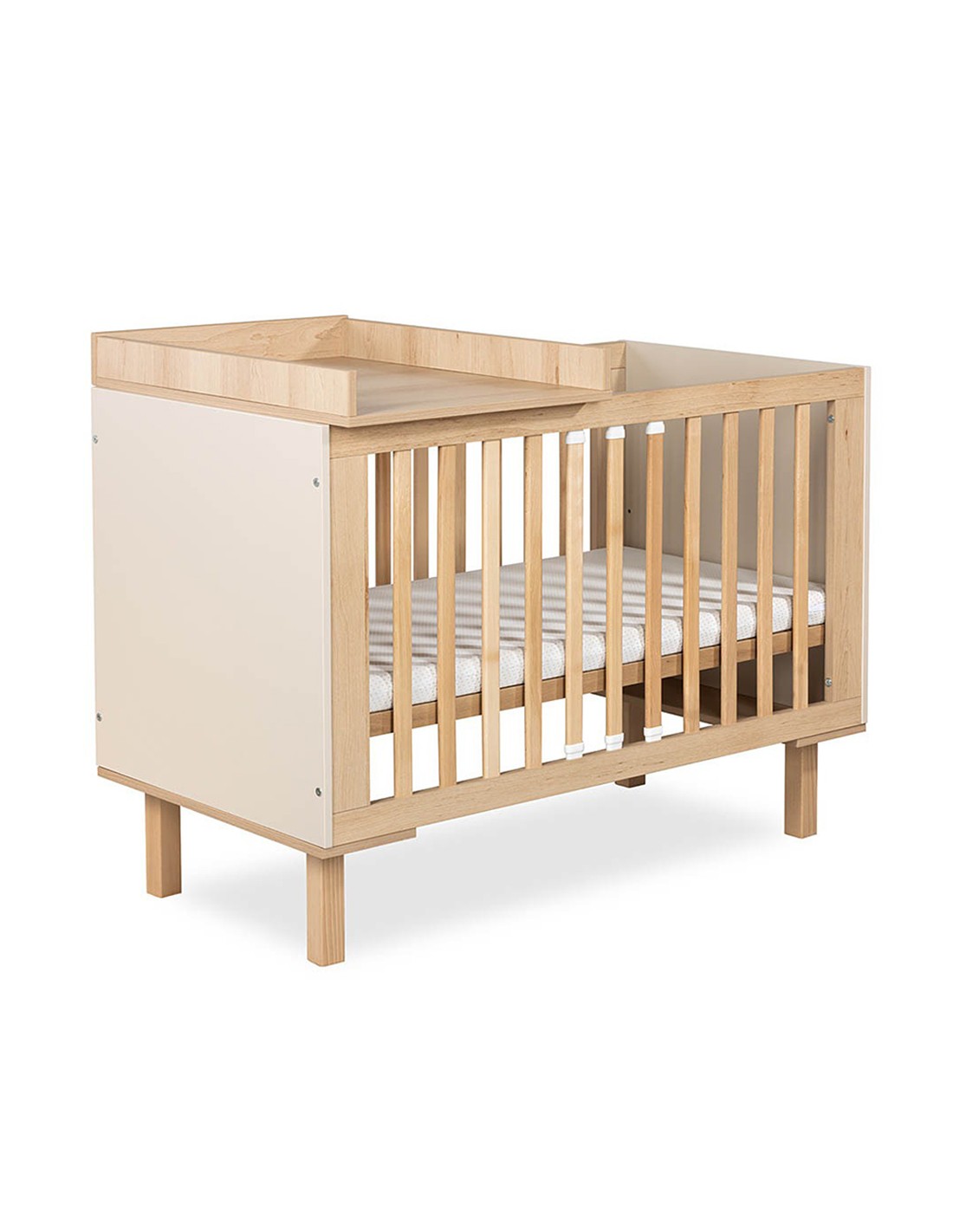 MATTI Lit bébé évolutif à barreaux pieds droits vernis écologique design moderne