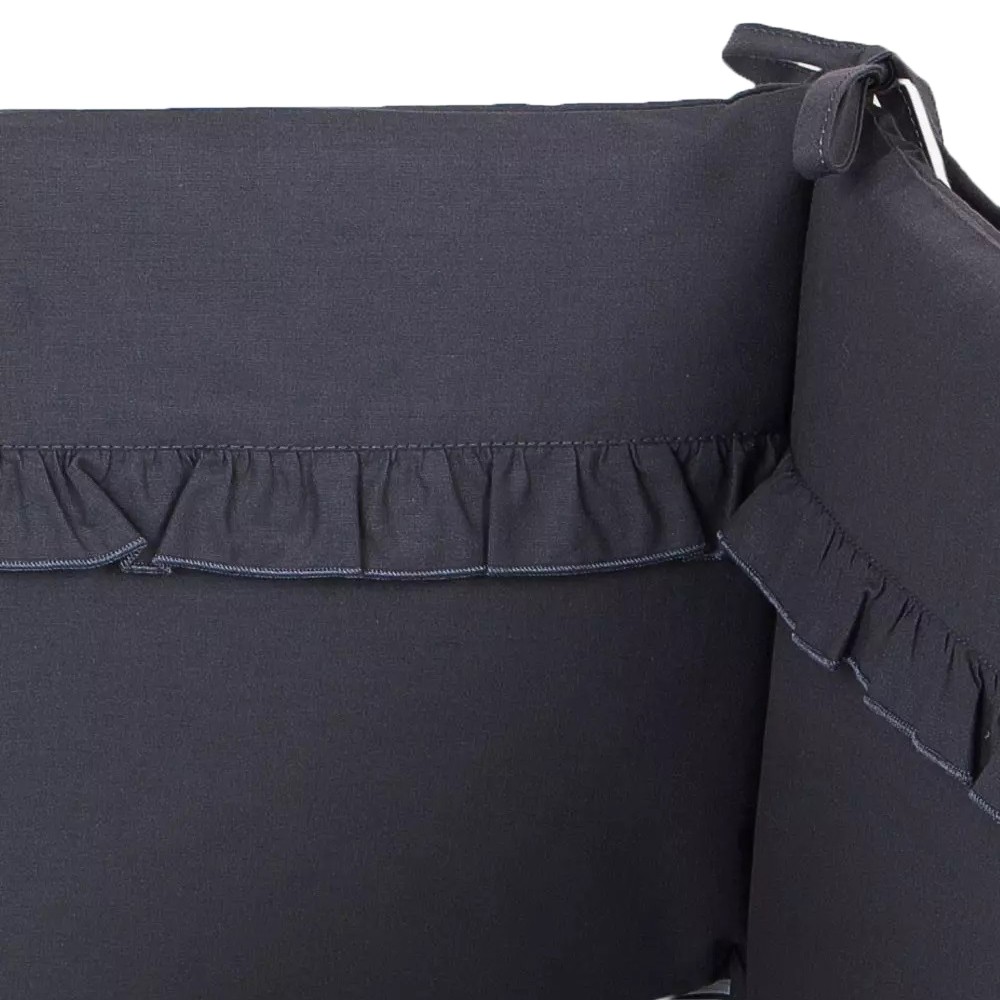 Tour de lit Oeko-Tex° 100 respirant 100% coton (120 g/m² épaisseur du fil 20 tex) doté d'un garnissage 100% polyester anti-allergique (350 g/m²).