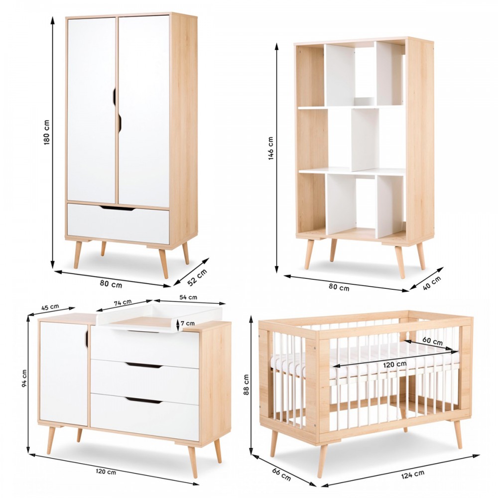 SOFIE Chambre bébé complète Commode à langer Armoire Bibliothèque et Lit
