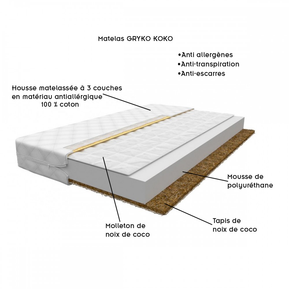 - Matelas inclus. Différents modèles de matelas sont disponibles. Housse amovible lavable.