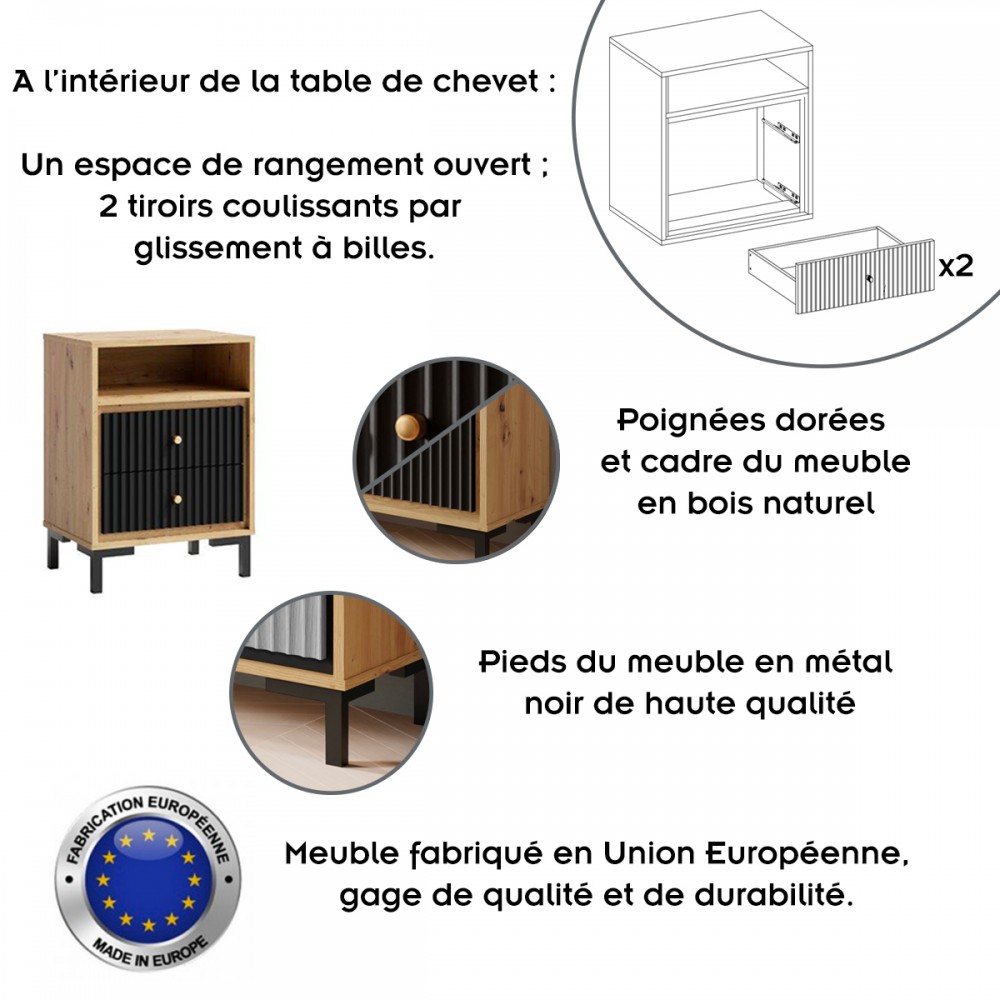 Découvrez notre table de chevet de la gamme PARII, alliant élégance et rangements. Elle est composée de deux tiroirs et d'un espace de rangement ouvert.