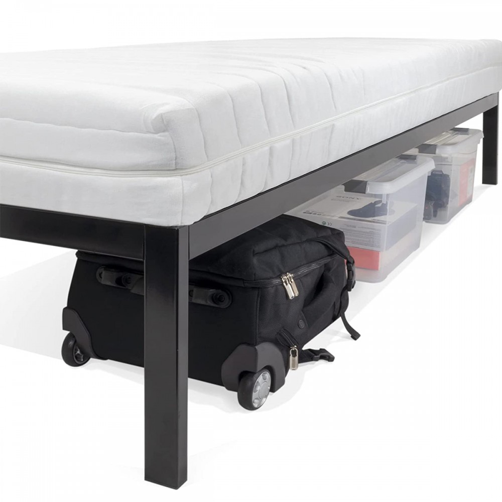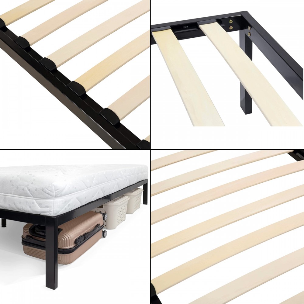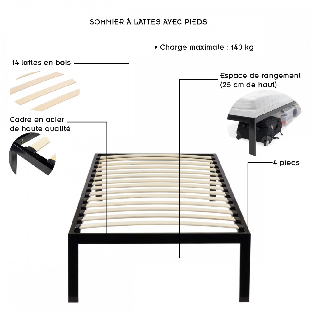 Sommier de lit à lattes en bois avec pieds. Cadre métallique résistant de grande qualité.